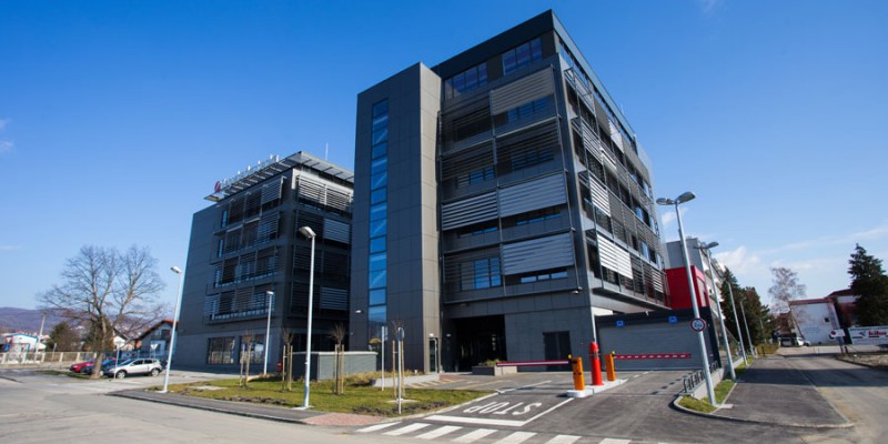 Osnovni konstruktivni sistem uredskog dijela zgrade predstavlja armirano-betonska okvirna konstrukcija s pravokutnim stupovima dimenzija 50×70 cm i 50×90 cm na osnom razmaku od cca 560 cm uzdužno i od 450 do 750 cm poprečno. U oba smjera se izvode armiranobetonske grede koje su visine 60 cm, dok im je širina jednaka dimenziji stupa. Stropne konstrukcije su armirano-betonske ploče debljine d = 18 cm.