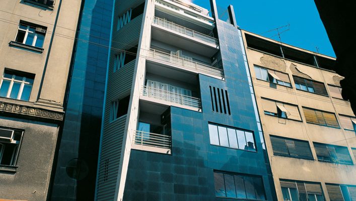 Vertikalnu konstrukciju čine armirano-betonski zidovi sa stupovima. Obodni podrumski zidovi su debljine 25 cm, dok su svi ostali u pravilu debljine 20 cm.
